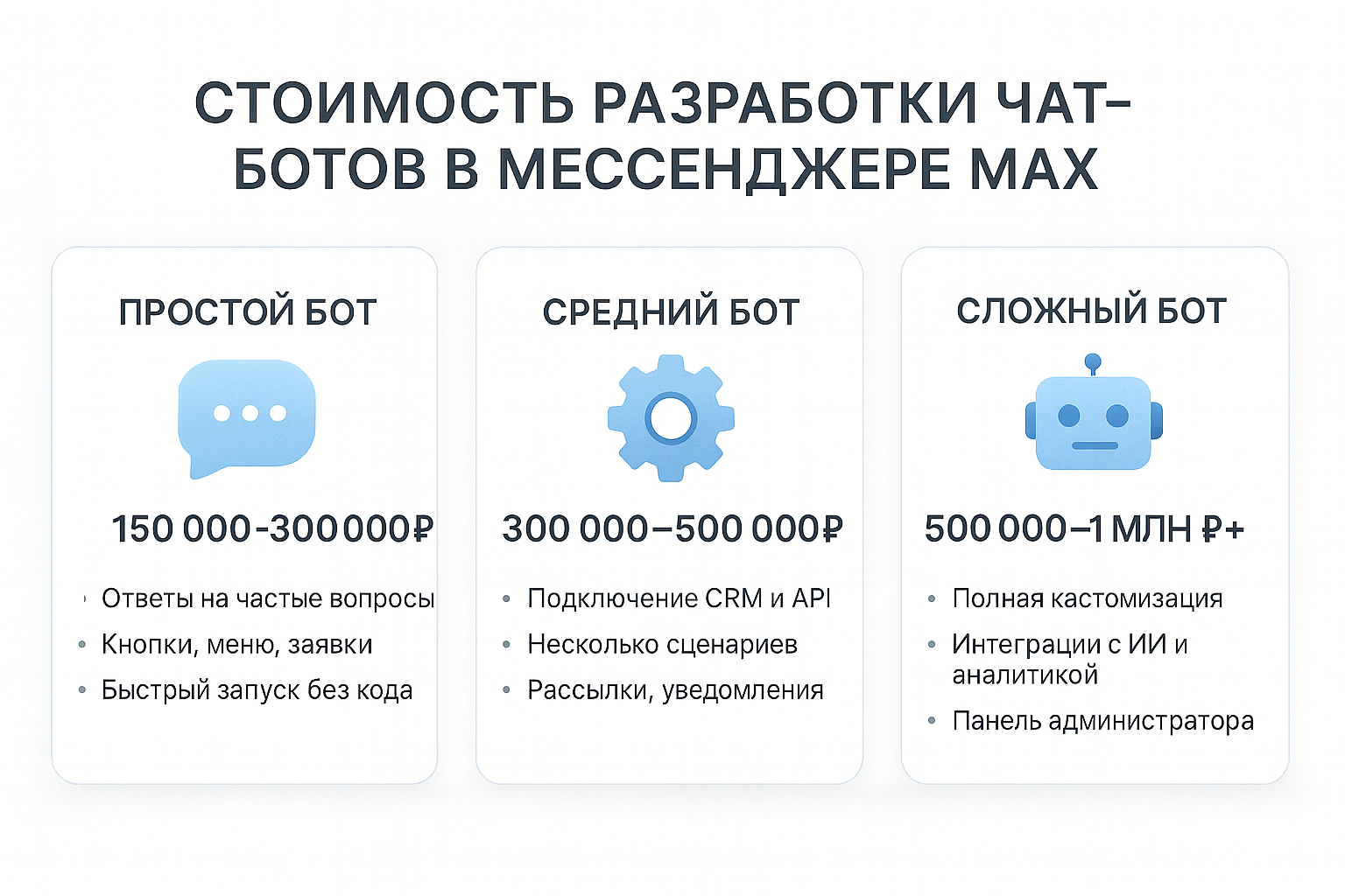 3.) Сложный (кастомный) бот — от 500 000 до 1 000 000 ₽ и выше