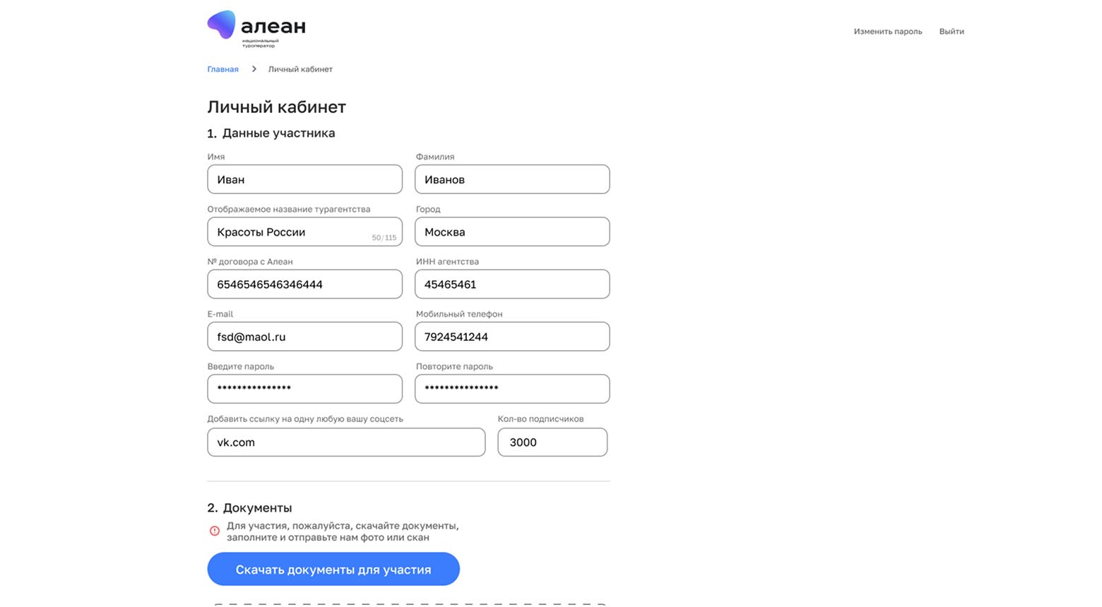 Личный кабинет — после регистрации пользователи получали доступ к кабинету, где могли бы изменять свои данные и отслеживать статус заявки.