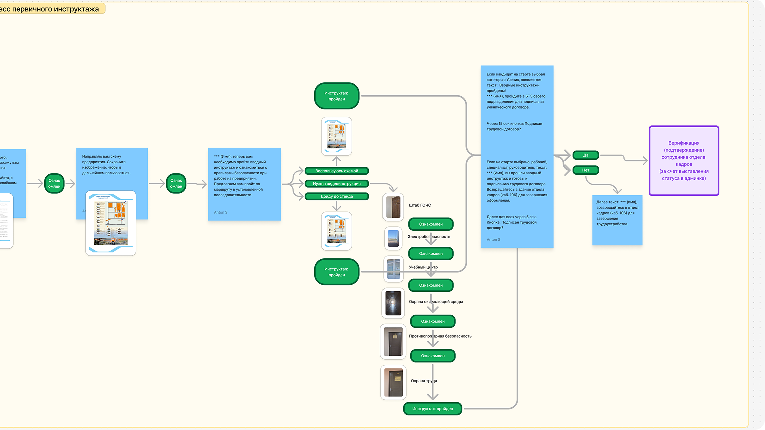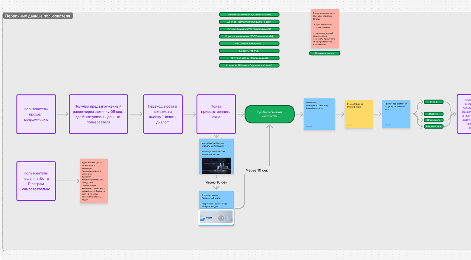 Доступ к боту сотрудники получают через QR-код. Они проходят онбординг в удобном формате: читают инструкции, смотрят фото и видео. Бот напоминает о важных шагах, отправляет уведомления и при необходимости предлагает помощь оператора. HR могут редактировать сценарии и добавлять материалы в админке: менять тексты, прикреплять файлы, настраивать таймеры ответов.