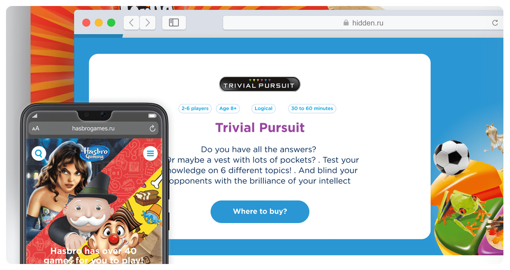 Hasbro — легенда среди настольных игр. Монополия, Дженга, Твистер, Клуэдо — наверняка хотя бы одна из них есть у вас дома. Компания хотела сделать так, чтобы выбирать игры стало так же весело, как в них играть. И мы придумали, как это сделать.