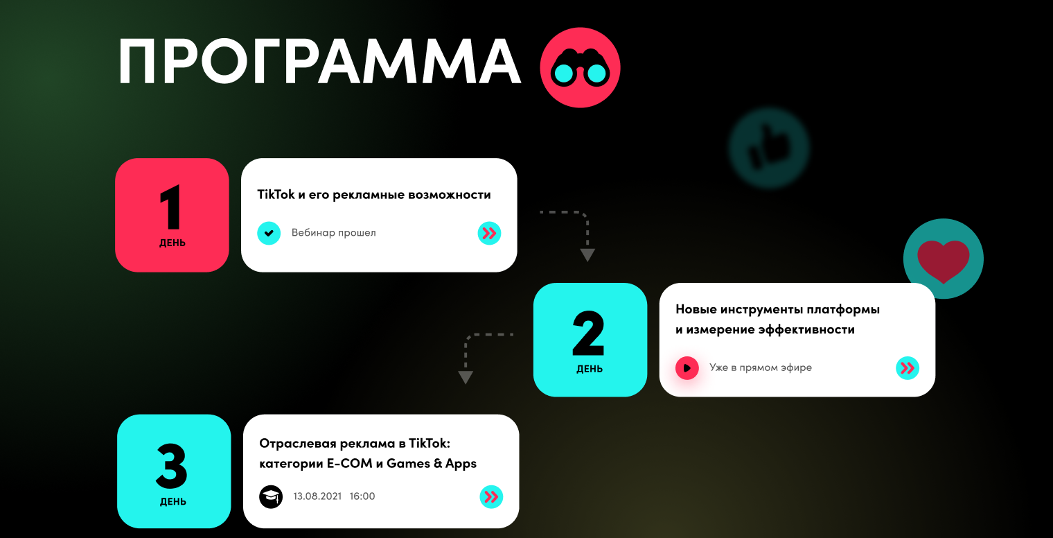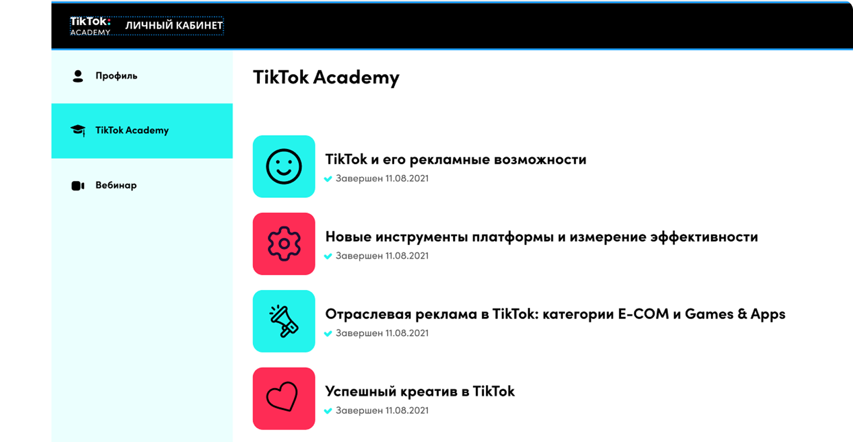 - Квизы и тестирование — 20 вопросов по аналитике TikTok, допускаются небольшие ошибки. После успешного прохождения — сертификат.